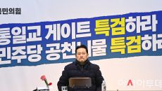 아시아투데이 송의주 기자 = 장동혁 국민의힘 대표가 19일 국회 본관 로텐더홀에서 '민주당의 공천 뇌물·통일교 게이트 특검 수- 14시간전