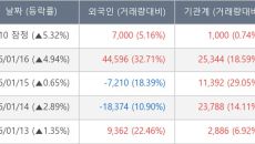 [장중수급포착] 수산인더스트리, 기관 5일 연속 순매수행진... 주가 +5.32%
