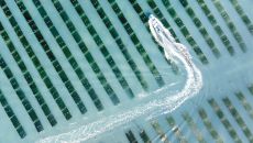 지난 17일 오후 전남 장흥군 앞바다에 있는 매생이 양식장. 네모난 대나무 발마다 초록색 매생이가 빼곡하게 자랐다. 어민들이- 2026-01-19 00:45