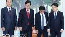 [이용우 기자] (서울=국제뉴스) 한병도 더불어민주당 원내대표와 송언석 국민의힘 원내대표가 19일 오후 서울 여의도 국회 운영- 4시간전