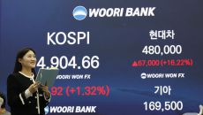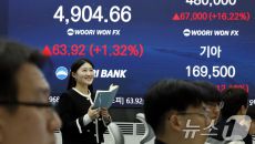 (서울=뉴스1) 박정호 기자 = 19일 오후 서울 중구 우리은행 본점 딜링룸 전광판에 현대차와 기아 주가 종가가 표시되고 있다- 4시간전