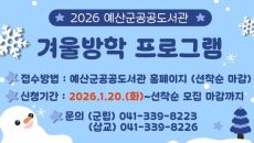 예산군 공공도서관, 2026년 겨울방학 프로그램 운영