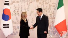 조르자 멜로니 이탈리아 총리과 악수하는 이재명 대통령