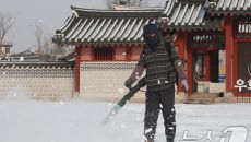 (수원=뉴스1) 김영운 기자 = 간밤에 눈이 내린 19일 경기 수원시 팔달구 화성행궁에서 관계자가 제설작업을 하고 있다. 20- 7시간전