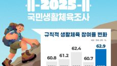 [스포츠조선 전영지 기자]"2025년 국민생활체육 참여율 62.9%. 전년 대비 2.2%p 상승." 문화체육관광부(이하 문체부- 39분전