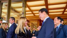 인사 나누는 이재명 대통령 - 조르자 멜로니 이탈리아 총리
