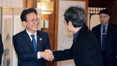 배우 문성근씨와 인사하는 김민석 총리