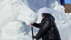 태백산 눈축제 앞두고 대형 눈조각 작업 한창