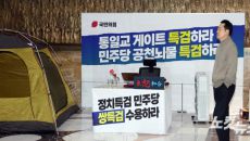'통일교 게이트 특검·민주당 공천뇌물 특검' 수용을 촉구하며 국민의힘 장동혁 대표가 20일 서울 여의도 국회 로텐더홀 농성장에- 9시간전