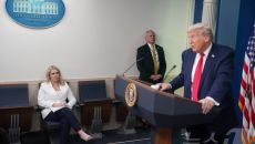 [포토]취임 1년 맞아 백악과 브리핑룸 찾은 트럼프 美대통령