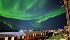 요즘 지구상에서 가장 핫한 지역 그린란드 수도 누크의 하늘에 초록색 오로라(Aurora)가 춤을 추듯 아름답게 빛나고 있습니다- 16시간전