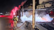 경부고속도로 김천분기점 인근 화물차 화재…한때 차량통제