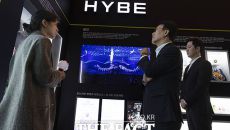 하이브 홍보부스 둘러보는 김민석 국무총리 [포토]