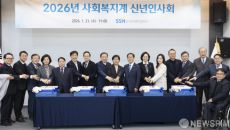[서울=뉴스핌] 정은경 보건복지부 장관을 비롯한 참석자들이 21일 오전 서울 마포구 한국사회복지협의회에서 열린 2026년 사회- 2026-01-21 17:58