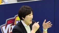 페퍼저축은행 장소연 감독이 21일 수원체육관에서 열린 2025-2026 V리그 여자부 현대건설과의 경기에서 선수들에게 이야기를- 50분전