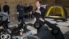 [이용우 기자] (서울=국제뉴스) 이석연 국민통합위원장이 21일 서울 여의도 국회 로텐더홀에서 이레째 단식농성중인 장동혁 국민- 2026-01-21 16:52