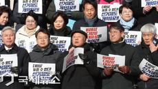 [이용우 기자] (서울=국제뉴스) 박석운(앞줄 왼쪽 다섯번째) 민중행동 공동대표가 21일 오전 서울 여의도 국회 본청 계단에서- 6분전