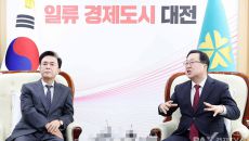 이장우 대전시장(오른쪽)과 김태흠 충남지사가 21일 두 단체장은 회동을 갖고 지난 16일 발표된 정부의 대전·충남 행정통합 지- 23시간전