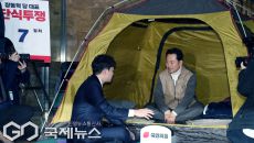 장동혁 대표 단식농성장 찾아 대화하는 이준석 대표