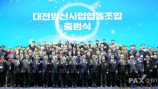 대전방산사업협동조합은 21일 호텔ICC에서 출범식을 열고 본격적인 활동에 돌입했다. 사진은 이장우 시장(앞 왼쪽 열 번째)이- 17시간전