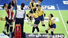 [사진]기뻐하는 페퍼저축은행, 2,3세트 연달아 잡았어