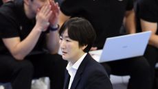 [포토]페퍼저축은행 장소연 감독, 서브는 여기!