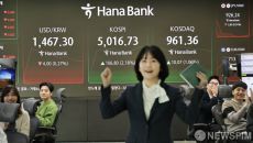 [서울=뉴스핌] 양윤모 기자 = 22일 오전 코스피가 5000 을 돌파하자 서울 중구 하나은행본점 딜링룸에서 직원들이 환호하고- 15시간전