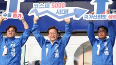 지난해 5월 대선후보 시절 '코스피 5000 시대'를 들어 보이며 경제회복 퍼포먼스를 하고 있는 이재명 대통령/ 사진=연합뉴스- 13시간전