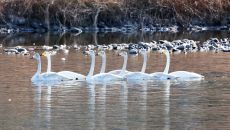 괴산 달천강에 내려앉은 '겨울 진객'… 큰고니 7마리 무리 관찰