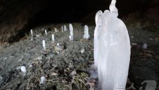 (제천=뉴스1) 손도언 기자 = 22일 오후 충북 제천시 덕산면 수산리 작은 사찰 보덕암 인근 보덕굴에서 석순처럼 자라는 역고- 17시간전