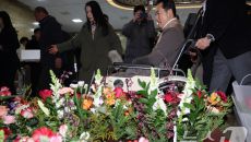 응원 꽃다발 지나는 장동혁 대표