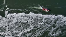 연이은 맹추위로 한강이 얼어붙은 22일 서울 강동구 광나루 선착장 인근에서 119 광나루 수난구조대 구조보트가 긴급출동에 대비- 2026-01-22 17:37