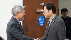 (서울=뉴스1) 유승관 기자 = 서왕진 조국혁신당 원내대표가 22일 서울 여의도 국회에서 홍익표 청와대 정무수석을 접견, 기념- 2026-01-22 17:28