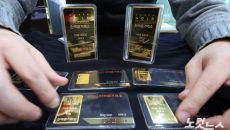 국내 금값이 사상 처음으로 ‘한 돈 100만원’ 을 넘어선 가운데 22일 서울 종로구 한국금거래소에서 관계자가 골드바를 들어보- 2026-01-22 17:05
