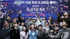 (서울=뉴스1) 박승희 기자 = 코스피가 꿈의 숫자로 여겨지던 '오천피'(5000포인트)에 마침내 도달했다. 이번 오천피 달성- 2026-01-22 17:01