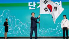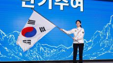 단기 흔드는 이수경 2026 밀라노 동계올림픽 선수단장