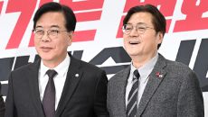 [이데일리 노진환 기자] 송언석(왼쪽 두번째) 국민의힘 원내대표가 22일 서울 여의도 국회에서 홍익표(오른쪽 두번째) 청와대- 2026-01-22 16:49
