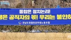 전남‧광주 행정통합 논의가 한창인 가운데 전남도청 인근 도로변에 통합 ‘졸속 추진’을 우려하는 많은 현수막이 내걸렸다.- 2026-01-22 15:55