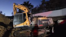 [양산=뉴시스] 안지율 기자 = 21일 오후 5시34분께 경남 양산시 명동의 한 공사장에 주차 중이던 굴착기에서 불이 났다.- 5시간전
