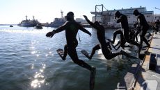 (창원=뉴스1) 윤일지 기자 = 전국적으로 맹추위가 기승을 부린 22일 경남 창원 진해 군항에서 해군 심해잠수사(SSU)들이- 12시간전