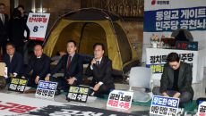 22일 서울 여의도 국회 로텐더홀 농성장에서 국민의힘 최고위원회의가 열린 가운데 여당에 통일교·공천헌금 '쌍특검' 입법을 요구- 6시간전