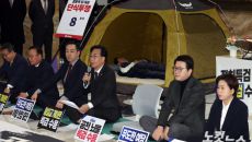 국민의힘 송언석 원내대표가 22일 서울 여의도 국회 로텐더홀 농성장에서 열린 최고위원회의에서 발언을 하고 있다. (뒤로 여당에- 6시간전