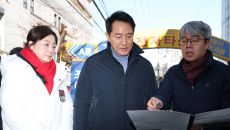 (서울=뉴스1) 김진환 기자 = 오세훈 서울시장이 22일 오전 서울 용산구 용산전자상가 인근 선인상가를 방문해 상가 소유자,- 2026-01-22 12:20