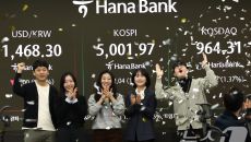 (서울=뉴스1) 최지환 기자 = 22일 오전 서울 중구 하나은행 본점 딜링룸 현황판에 코스피 지수가 장중 5000p를 넘으며- 7시간전