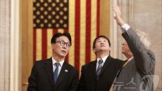 (서울=뉴스1) = 김민석 국무총리(왼쪽에서 네 번째)가 22일(현지시간) 미국 국회의사당에서 열린 미 하원 주요인사 초청 오- 2026-01-23 07:26