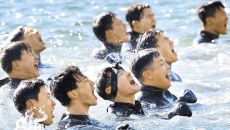 22일 경남 창원시 진해구 진해 군항 앞바다에 들어간 해군 해난구조전대(SSU) 잠수사들이 혹한기 훈련을 받으며 군가를 부르는- 21시간전