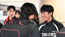 23일 오후 KIA 타이거즈 선수단이 김포공항을 통해 전지훈련이 열리는 일본으로 출국했다. 인사를 나누고 있는 KIA 곽도규,- 16시간전