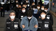 부산으로 압송되는 캄보디아 스캠 범죄 피의자들