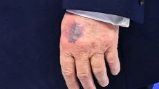 트럼프 손등에 또 '푸른 멍' 발견…트럼프 "○○ 때문"