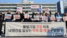 미국 대사관 앞에서 미국 정·재계 규탄 구호 외치는 시민단체들